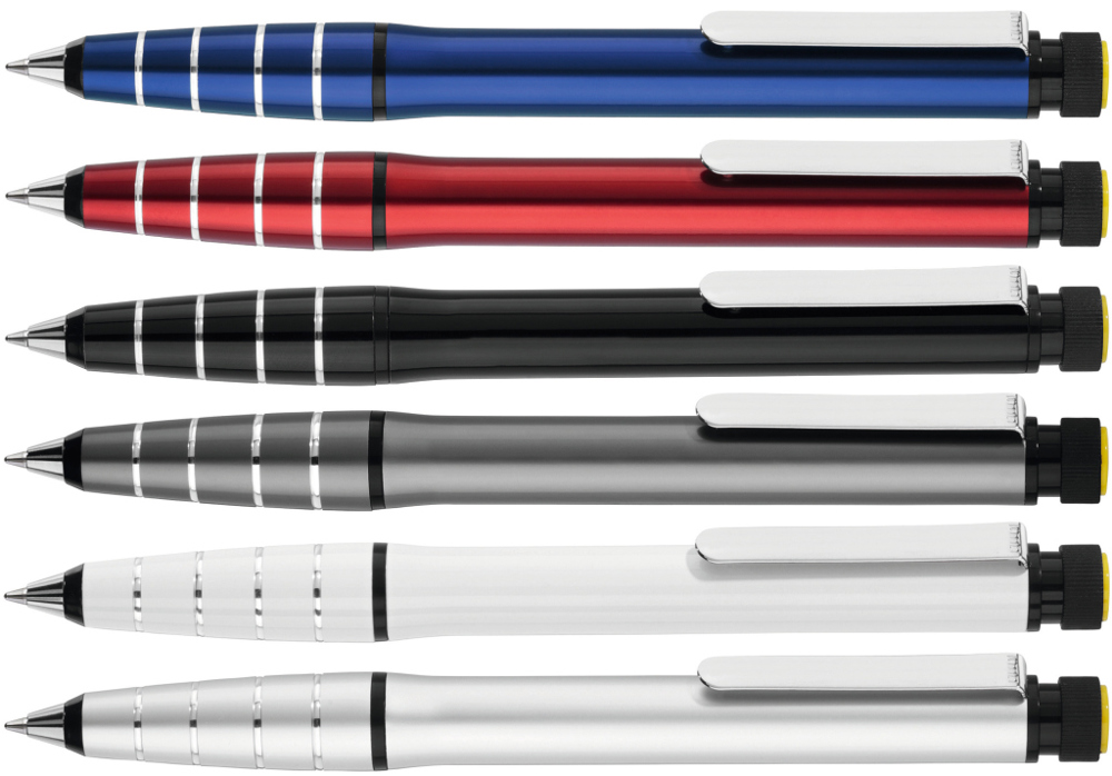 Metall-Drehkugelschreiber aus Aluminium mit integriertem gelb schreibenden Textmarker im Schaft.... mehr