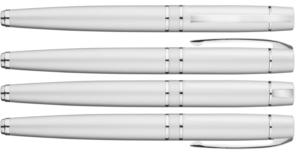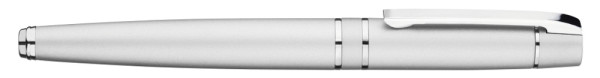 Metall-Rollerball mit gefedertem Clip und schwarzer Gummigriffzone. Beschlagteile glanzverchromt.