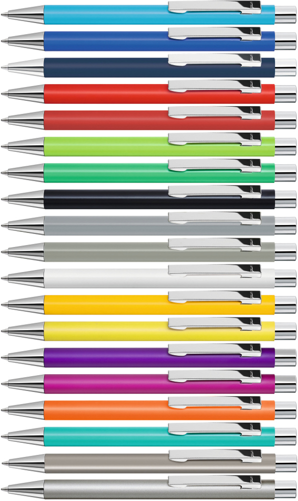 Metall-Druckkugelschreiber mit mattem Gehäuse. Metallclip, Metallspitze und Drücker silber glänzend. mehr