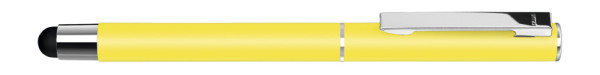 Metall-Rollerball mit mattem Gehäuse. Metallclip und Zierring silber glänzend, Griffzone schwarz. Gummiertes Schaftende für die Touchscreensteuerung.