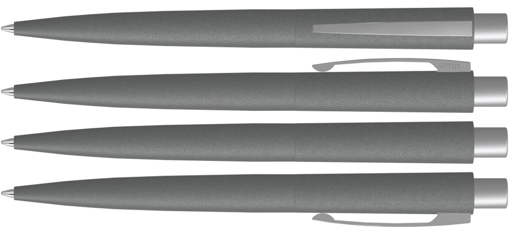 Metall-Druckkugelschreiber mit nachgestellter Beton- bzw. Steinoptik und Haptik. Metallclip und Drücker matt verchromt.