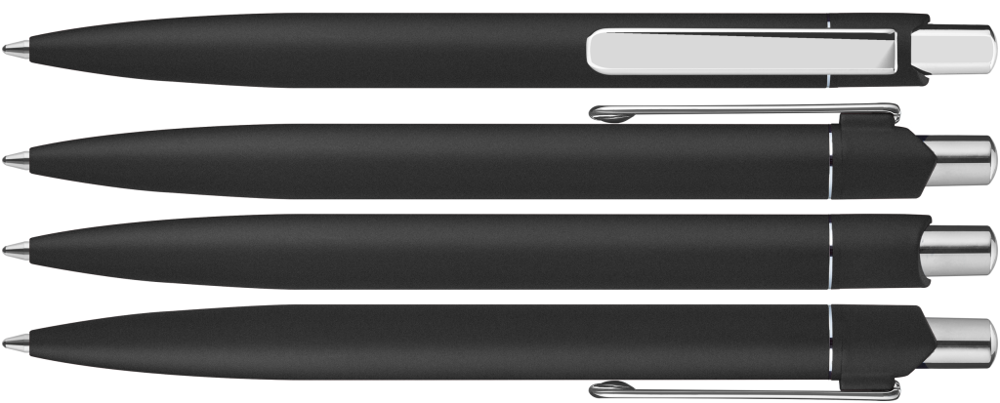 Metall-Druckkugelschreiber mit matt lackiertem Aluminiumschaft. Metallclip und Drücker silber glanzverchromt.