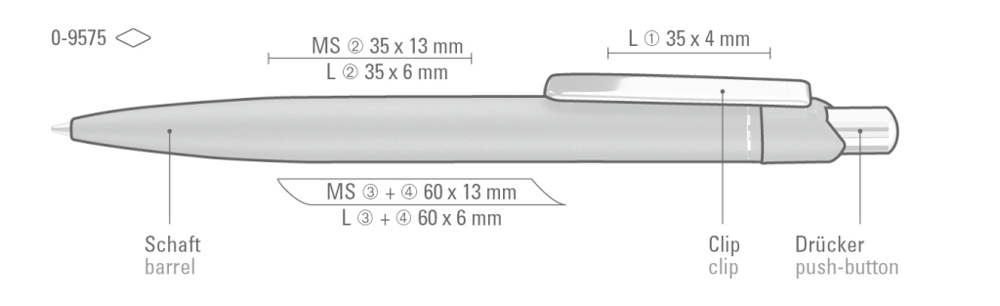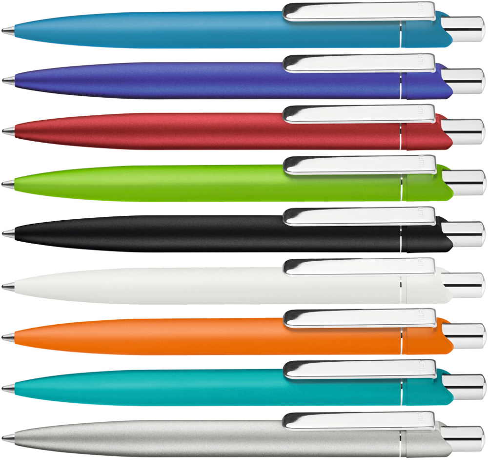 Metall-Druckkugelschreiber mit matt lackiertem Aluminiumschaft. Metallclip und Drücker silber glanzverchromt.
