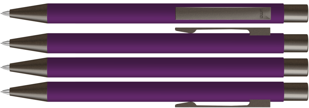 Metall-Druckbleistift (0,7mm) mit Softtouch-Gehäuse. Metallclip, Metallspitze und Drücker GUN metallic. Radiergummi im Drücker.
