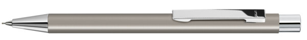 Metall-Druckbleistift (0,7mm) mit mattem Gehäuse. Metallclip, Metallspitze und Drücker silber... mehr