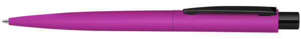 Metall-Druckkugelschreiber mit Softtouch-Gehäuse. Metallclip und Drücker schwarz glänzend.