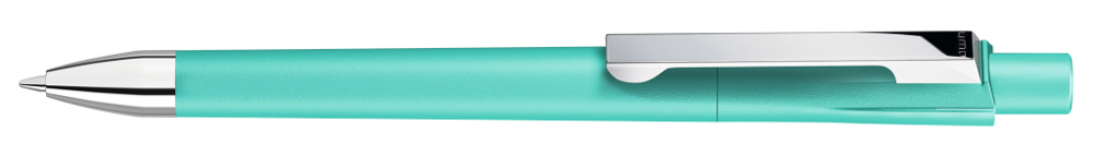 Druckkugelschreiber mit gedeckt mattem Gehäuse. Schwere Metallspitze und Metallclip glanzverchromt. mehr