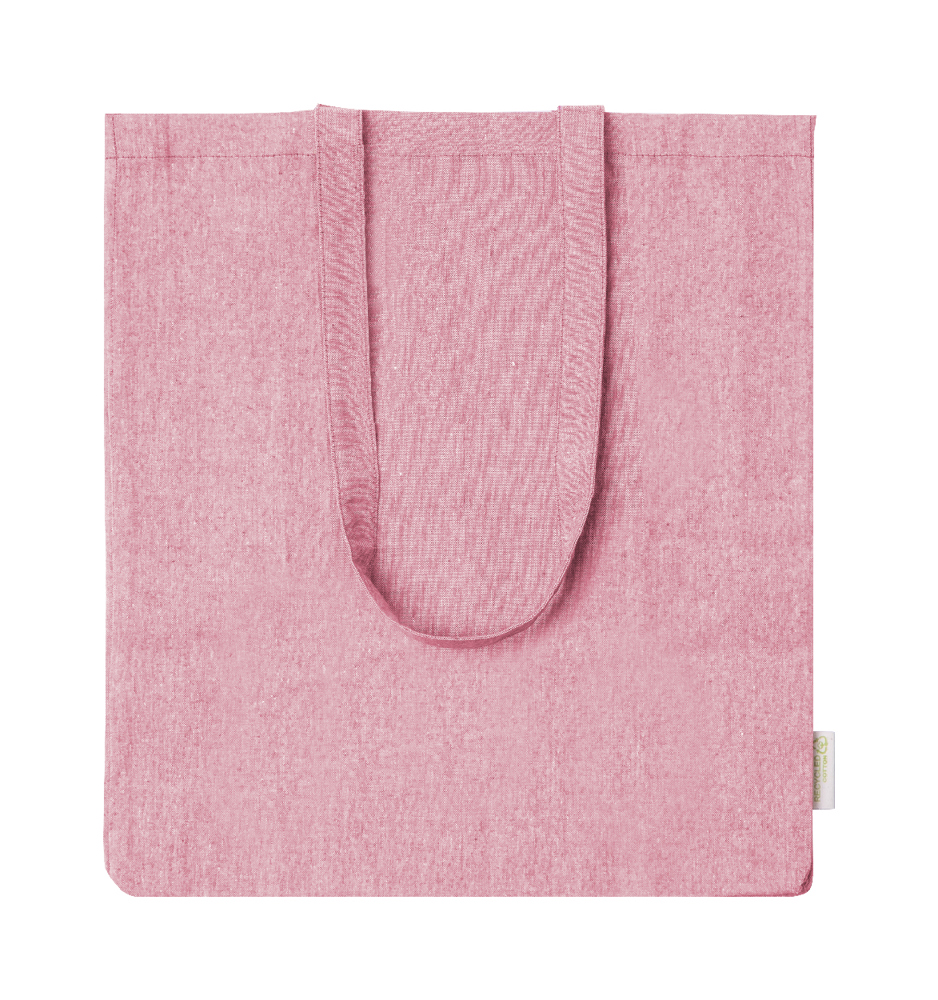Einkaufstasche mit Seitenfalte aus recycelter Baumwolle und langen Henkeln. Material: 100 % recycelte Baumwolle, 140 g/m². MIt Label Recycelte Baumwolle.