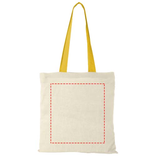 Mit ihren farbenfrohen Tragegriffen setzt diese Tasche auf jeder Veranstaltung, jedem Kongress und jedem Festival einen Farbakzent. Die Nevada Tote Bag aus 100 g/m² Baumwolle ist eine preisgünstige und leichte Tasche mit einem offenen Hauptfach. Mit ihrem Fassungsvermögen von 7 Litern eignet sich diese Tasche perfekt für den Transport von alltäglichen Dingen, vom Telefon und der Geldbörse bis hin zum Lieblingsbuch oder Tablet. Dank der 30 cm langen Griffe lässt sich die Tasche gut tragen. Hergestellt in Indien und OEKO-Tex zertifiziert. Belastbar bis zu 5 kg Gewicht.