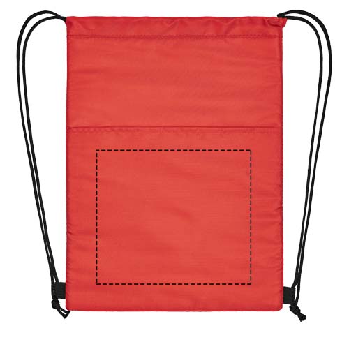 Kühltasche mit Kordelzugverschluss in schwarzer Farbe. Ausgestattet mit einer offenen Fronttasche. Passend für 12 Dosen. Beständigkeit bis zu 5 kg.