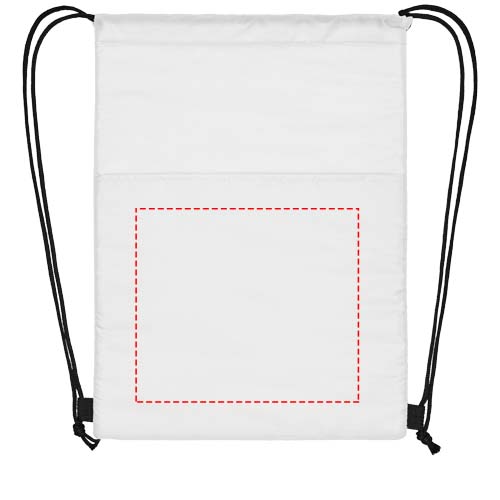 Kühltasche mit Kordelzugverschluss in schwarzer Farbe. Ausgestattet mit einer offenen Fronttasche. Passend für 12 Dosen. Beständigkeit bis zu 5 kg.