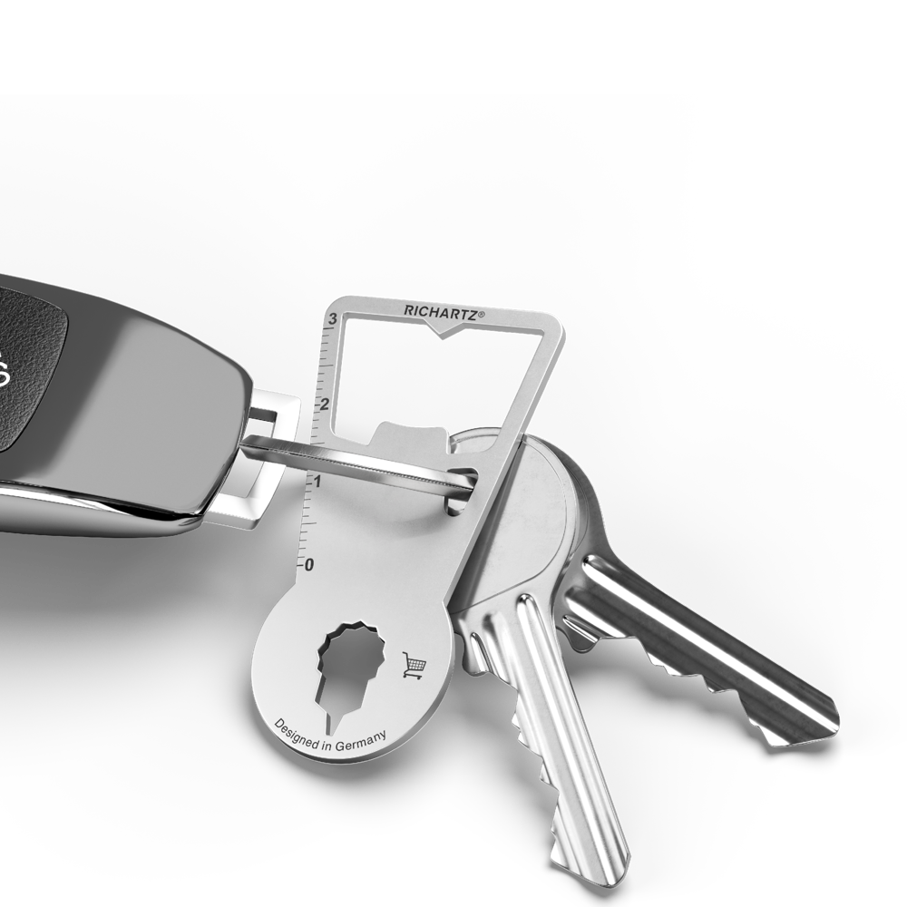 Ultraflach, handlich und an jedem Schlüsselbund entspannt dabei: Kein Kronkorken ist vor unserem FLASCHENÖFFNER plus sicher. Dabei kann er noch viel mehr: Er löst Einkaufswagen und einige weitere Alltagsherausforderungen wie Maß nehmen, Nägel ziehen und vieles mehr!
