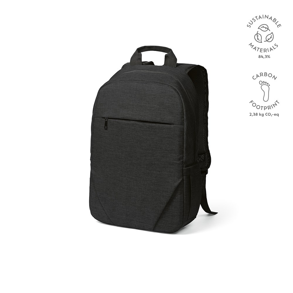 In unserem 300 D rPET-Rucksack mit 18L Fassungsvermögen trifft Effizienz auf Nachhaltigkeit. Seine Seitentasche und ein Vorderfach mit Reißverschluss sorgen für zusätzliche Nützlichkeit. Der verstärkte Griff an der Oberseite erleichtert die Mobilität in der Stadt und sorgt für Haltbarkeit.