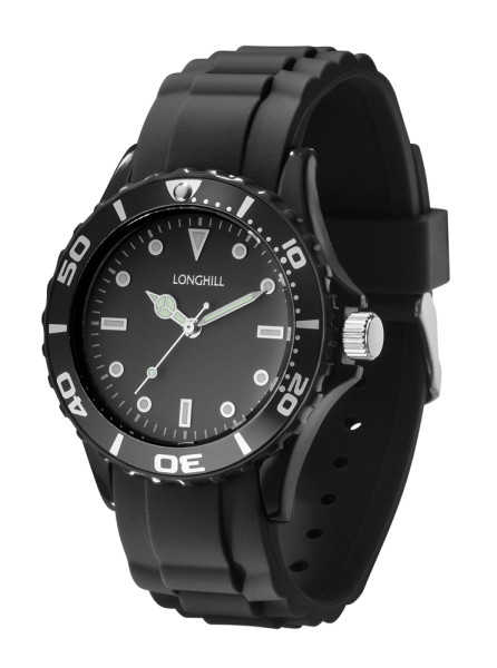 Ausstattung: Gehäusetiefe: 12 mm, Uhrwerk: PC 21, Zifferblatt schwarz, Index Applikationen, Zeiger silber/leuchtend, Gehäuseboden Edelstahl, 3 ATM water resistant , Kunststoffarmband schwarz, 20 mm