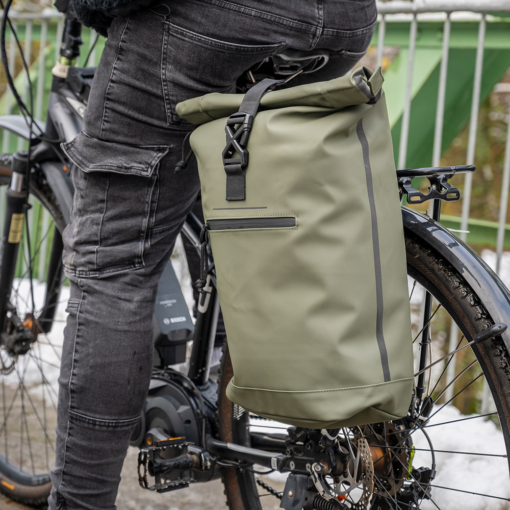 Unser Fahrradrucksack bietet ein großes Reißverschlusshauptfach mit Klickverschluss. Mit der verstellbaren Fahrrad-Funktion kann der Rucksack ganz einfach an den Gepäckträger angebracht werden. Passend für den Outdoor Einsatz hat der TRYCYCLE ein wasserabweisendes Material mit reflektierenden Details und verschweißten Reißverschlüssen. Mit einem Volumen von ca. 30 Litern ist dieser Rucksack der perfekte Begleiter auf zwei Rädern.
