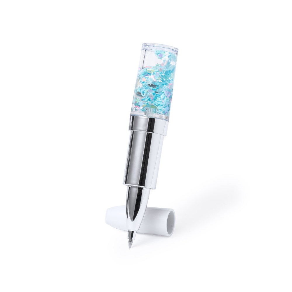 Origineller Stift in Form eines Lippenstifts, mit Flüssigkeit im Inneren in einem bunten Design.... mehr