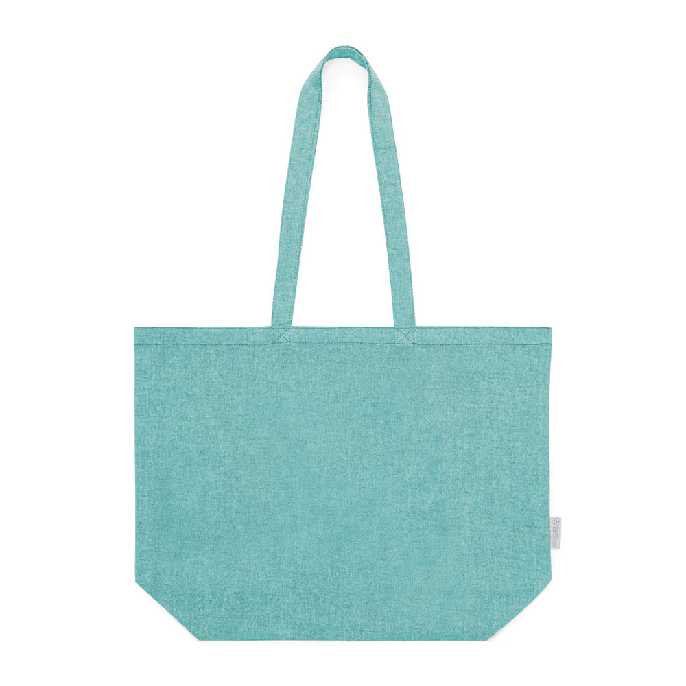 Natur Linie Tasche aus 140g/m2 recycelter Baumwolle. Abgenäht und mit langen, verstärkten Griffen (70 x 2,5 cm). Mit Bodenfalte und erhältlich in den Farben natur und schwarz, mit Etikett aus recycelter Baumwolle auf der Außenseite. Widerstandsfähig bis zu einem Gewicht von 6 kg.GRS-Zertifizierung (Global Recycled Standard) verfügbar, die die recycelte Herkunft des für die Herstellung des Produkts verwendeten Materials garantiert.