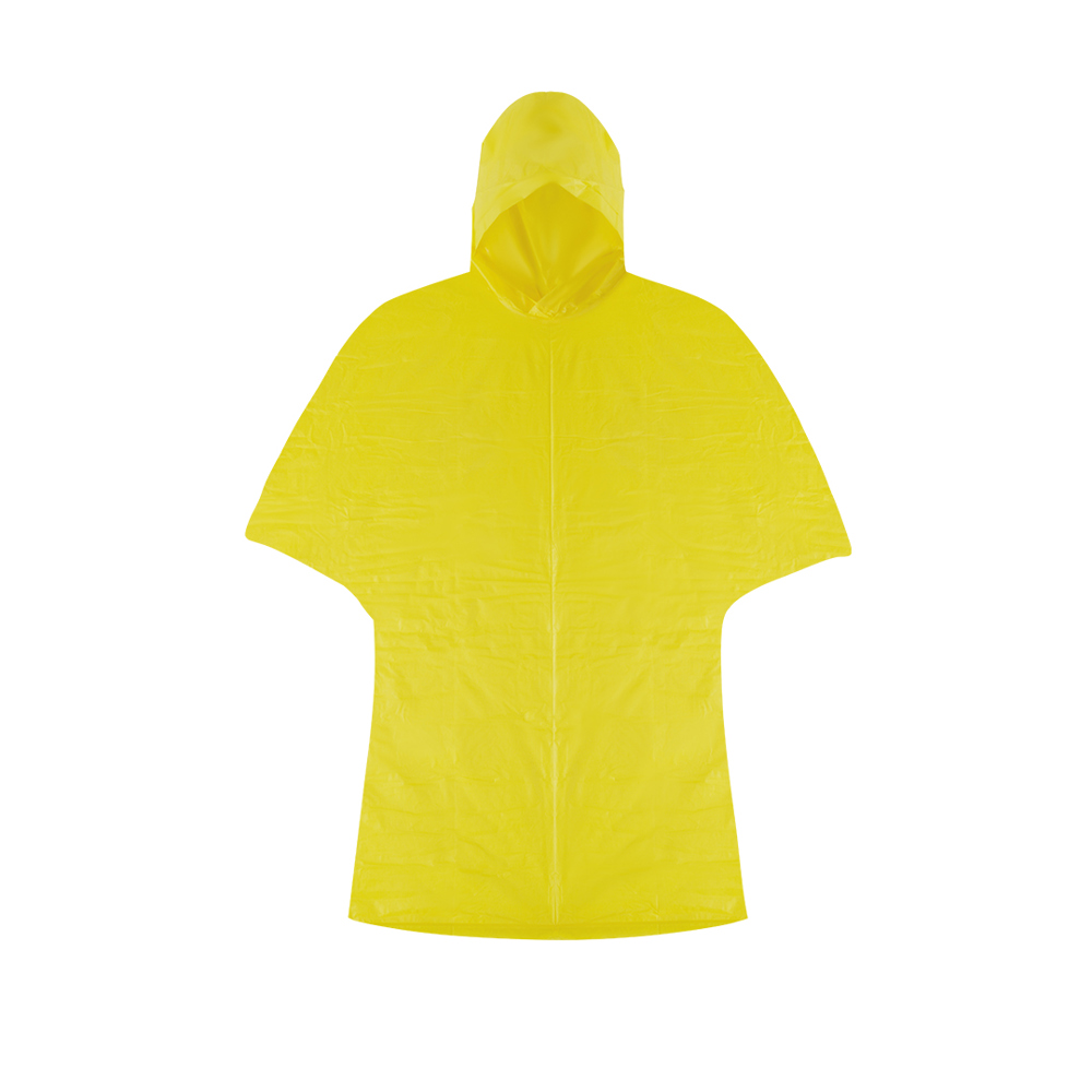 Poncho aus widerstandsfähigem, hitzeversiegeltem PEVA-Material in verschiedenen Farben. Mit Hakenverschluss an den Seiten. Präsentiert in einer individuellen, farblich passenden Tasche mit Netzeinsatz sowie Kordel mit Stopper. Einheitsgröße für Erwachsene.