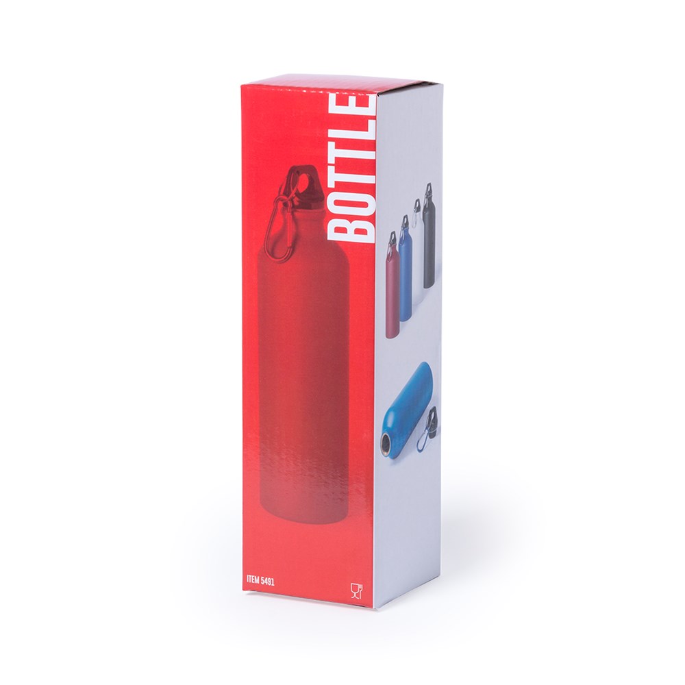 Aluminium Trinkflasche mit 800 ml Fassungsvermögen. Mit aufschraubbarem Sicherheitsverschluss und Metallkarabiner für den einfachen Transport. Originelle Mattlackierung in einer breiten Farbpalette. Einzeln verpackt in einer Designbox.