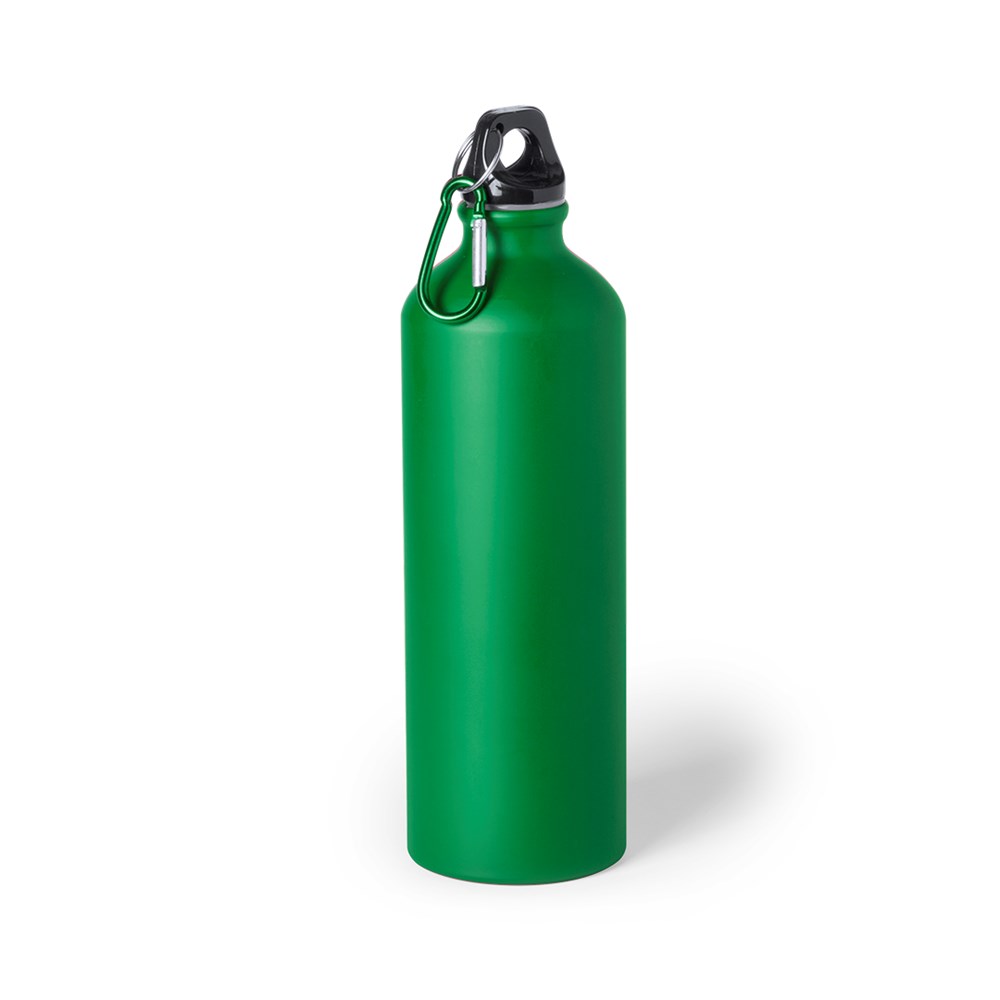 Aluminium Trinkflasche mit 800 ml Fassungsvermögen. Mit aufschraubbarem Sicherheitsverschluss und Metallkarabiner für den einfachen Transport. Originelle Mattlackierung in einer breiten Farbpalette. Einzeln verpackt in einer Designbox.