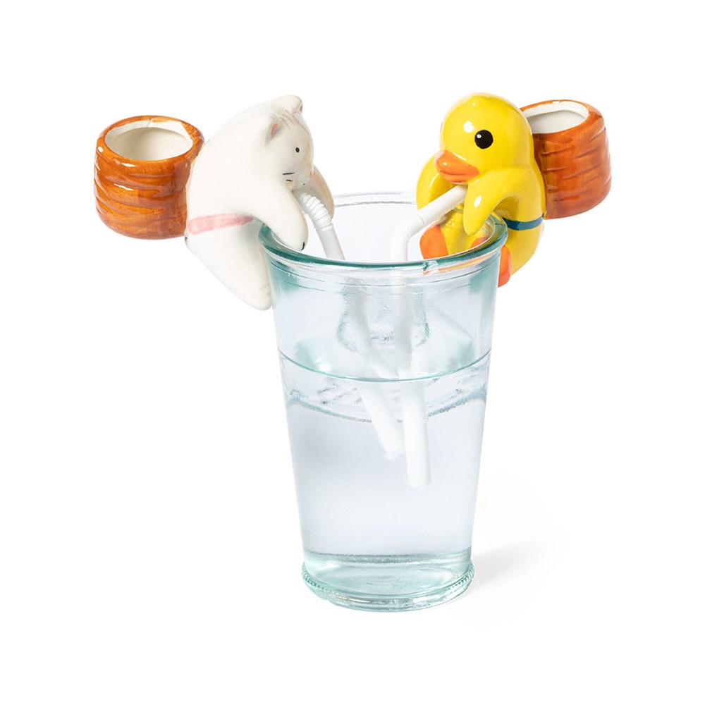 Saugender Blumentopf mit tollem Ente- und Kätzchen-Design. Einfach den Strohhalm ins Wasser... mehr