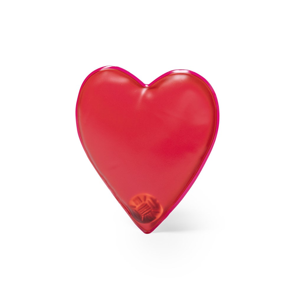 Wärmepatch mit Herzmotiv. Wiederverwendbar und lang anhaltende Wärmewirkung. Er wird durch Biegen des Blechs aktiviert, so dass der Patch aushärtet und sich erwärmt. Zur Wiederverwendung erwärmen Sie Wasser in einem Behälter, in dem sich das Pflaster befindet, bis das Gel im Inneren wieder flüssig ist, und drücken Sie das Metallblech erneut an. Betriebsanleitung in Englisch und Spanisch verfügbar.