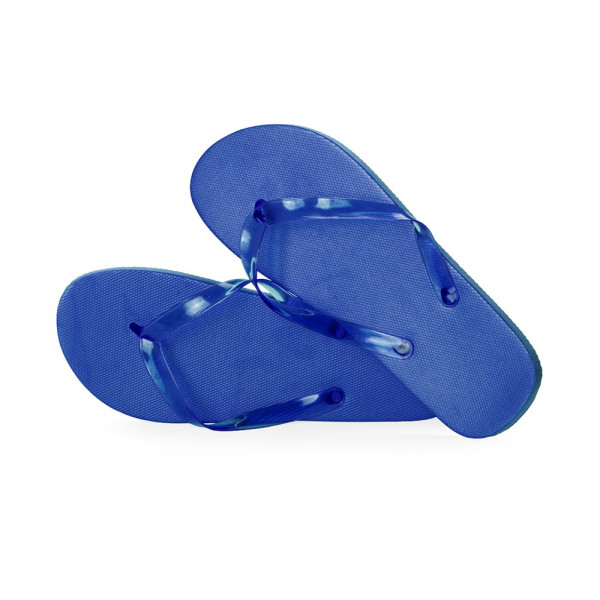 Ein Paar Flip Flops aus EVA und PVC. Sohle aus strapazierfähigem EVA für hohe Haltbarkeit und ergonomische Riemen aus passendem PVC. Erhältlich in einer Reihe von leuchtenden Farben, die zu jedem Stil passen. Erhältlich in den Größen 36-38 und 42-44.