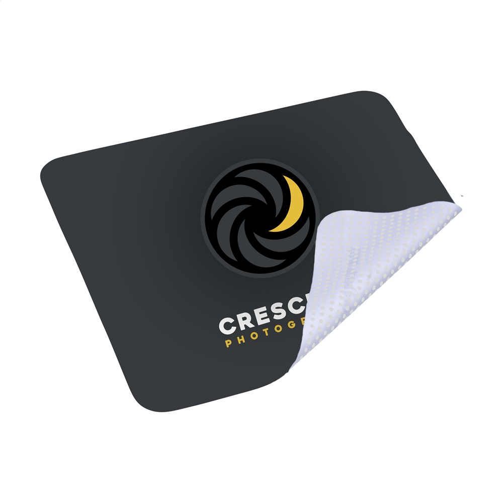 Multifunktionales Mauspad aus RPET mit rutschfester Unterseite. Funktioniert als Mauspad und als Reinigungstuch für Ihren Computerbildschirm. Optional: Pro Stück in einer Verpackung.