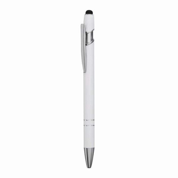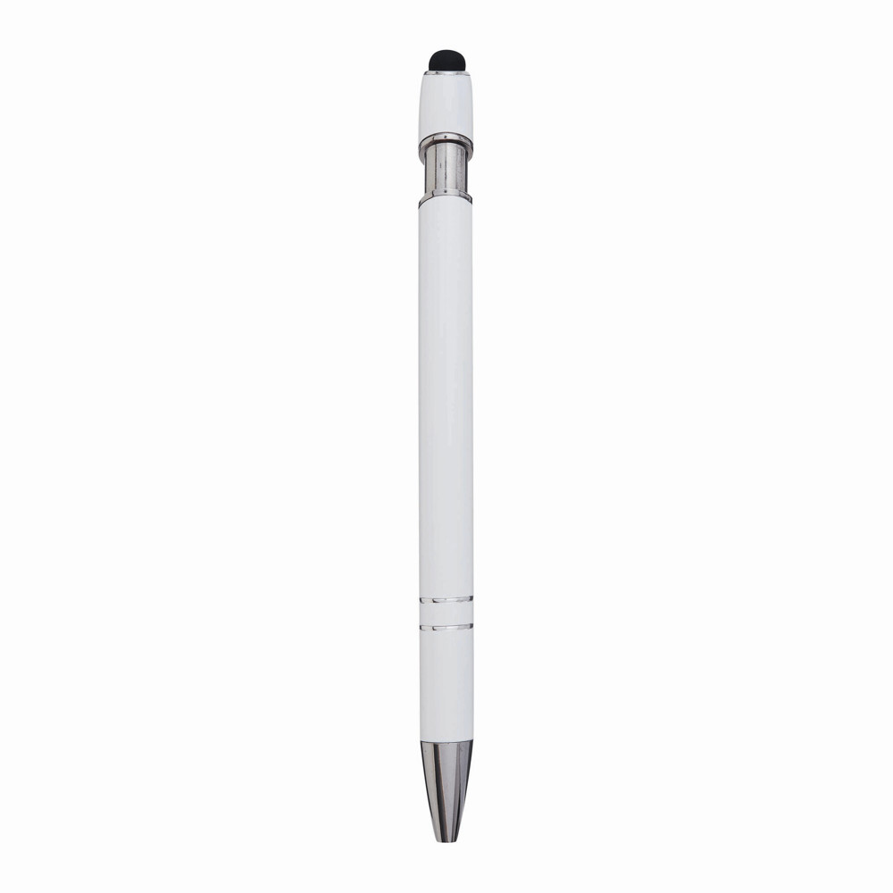 Aluminium-Kugelschreiber MERCHANT: mit glänzendem Aluminium-Schaft, Druckmechanismus, am Schaftende mit Touchscreen-Spitze, blauschreibend
