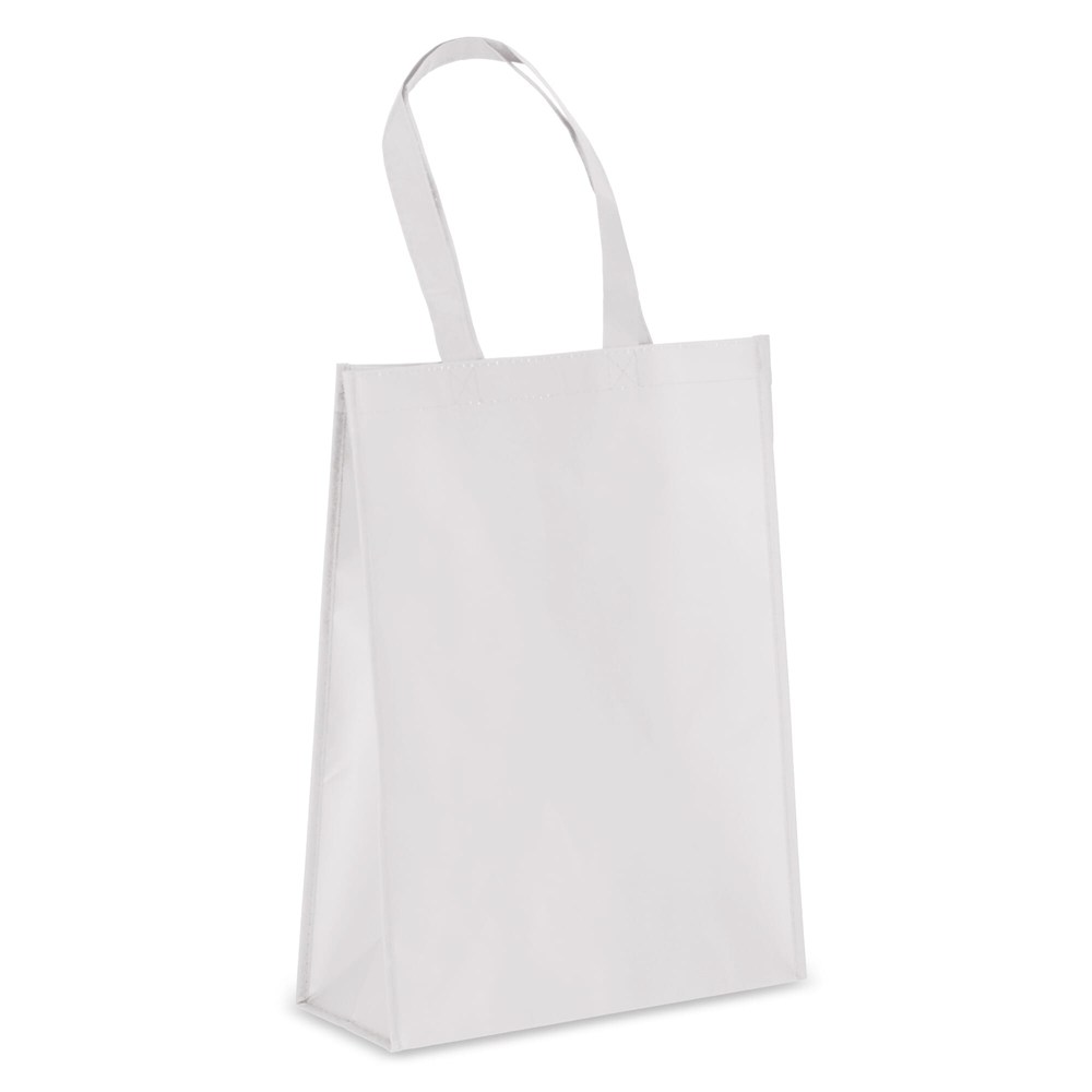 Tragetasche aus 70% recyceltem, laminiertem Non Woven. Mit robusten, genähten Griffen und einem geräumigen Innenraum, perfekt für den täglichen Gebrauch. Die nachhaltige Alternative zu laminierten Non Woven Taschen
