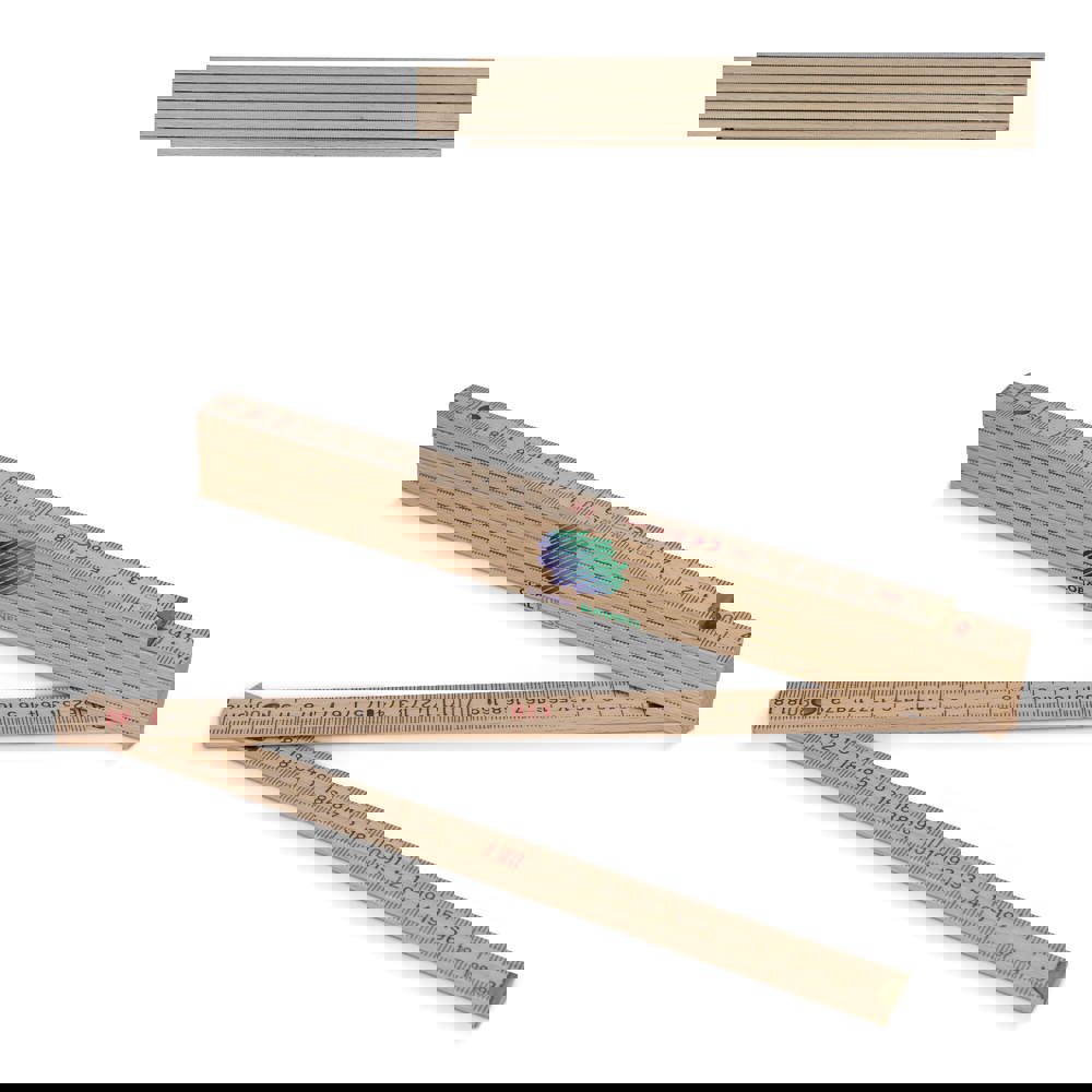 Zollstock mit einer Gesamtlänge von 2 Metern. Langlebig und handlich, ideal für professionelle und Heimwerker-Projekte. Der Zollstock hat eine stoßfeste Beschichtung und extra starke, rostfreie Stahlscharniere. Die Zollstöcke aus Buchenholz haben ein Rasterungswinkel von 180° grad und einen Winkeleinteilung am zweiten Glied. Zudem innenliegende durchgenietete Gelenkfedern. Duplex skaliert, CE-Zertifiziert und EU-Produktion.