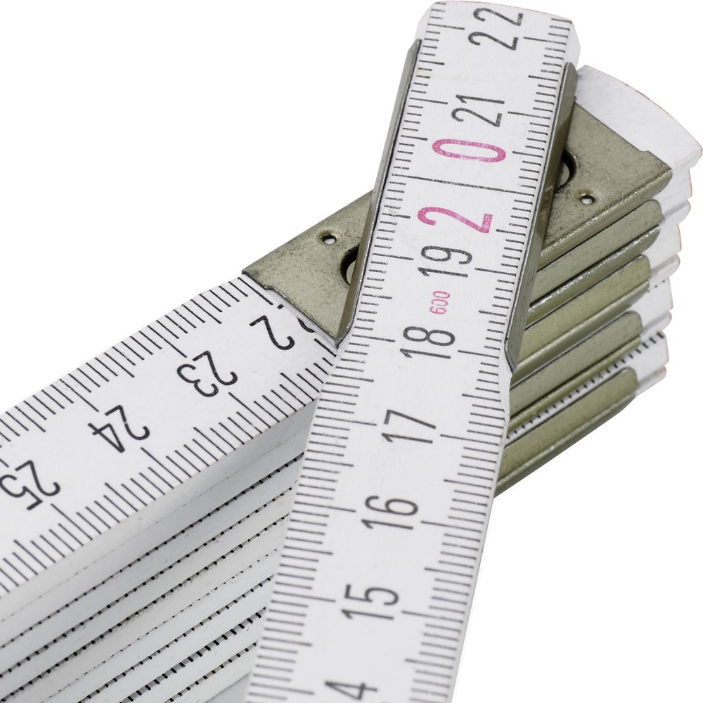 Faltbares Holzlineal von Stabila mit einer Gesamtlänge von 2 Metern. Die Skala ist in cm. Das Lineal ist mit einer Schutzschicht versehen. Mit CE- und Metrologie-Kennzeichnung und EG-Baumusterprüfbescheinigung. Genauigkeitsklasse 3.