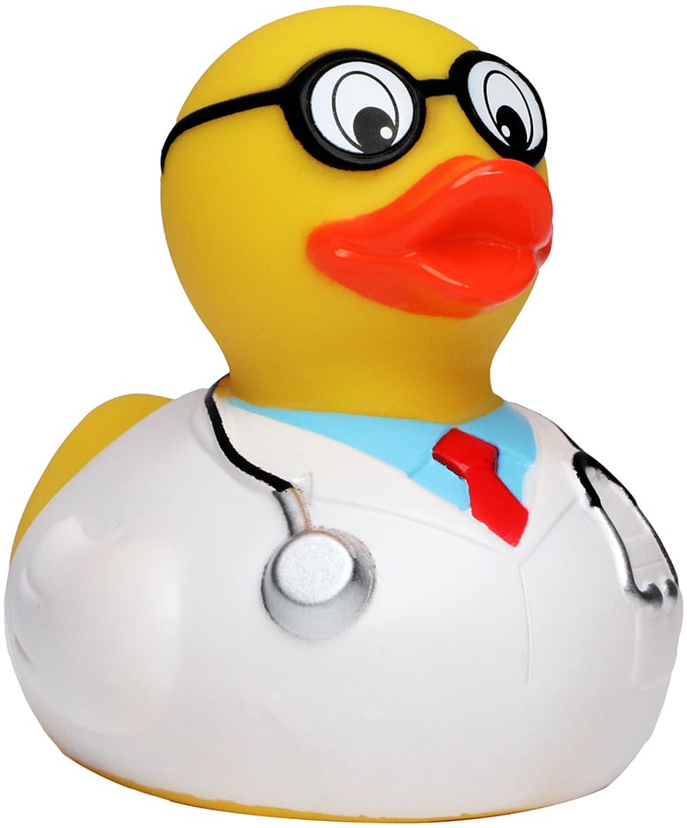 Mit dieser Ente kann es Ihnen gar nicht schlecht gehen, denn bei unserem Professor ist man auf jeden Fall in den richtigen Händen. Selbst für Weißkittelphobiker ist er der richtige Ansprechpartner, denn sein weißer Kittel wird nicht nur durch seine gelbe Farbe, sondern auch noch durch sein blaues Hemd und die rote Krawatte aufgelockert. Die große, schwarze Brille lässt ihn noch schlauer aussehen, als er sowieso schon ist. Lachen ist die beste Medizin und diese Ente bringt jeden zum Lächeln!