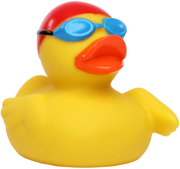 Mit unserer Schwimmer Ente wird Ihre Badewanne zur Trainingsstrecke, denn sie will schwimmen, schwimmen, schwimmen und plant, bei Olympia ganz groß abzusahnen. Ihre Paradedisziplin ist das Kraulen – das sieht man auch an ihrer Flügelhaltung. Natürlich ist das Entchen auch bestens mit Badekappe und Schwimmbrille ausgestattet, um optimal trainieren zu können.