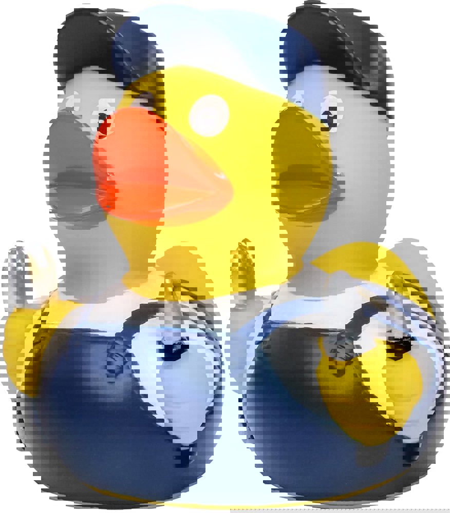 Dieses Badeentchen ist ein echter Handyman. Egal was - er repariert alles. Bestens ausgestattet mit Schraubenschlüssel und Schraubendreher ist er fröhlich im Blaumann zur Stelle.