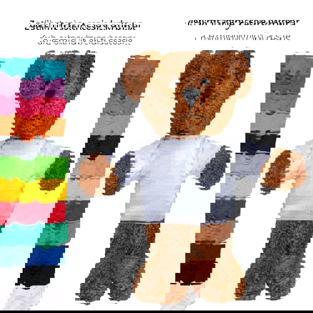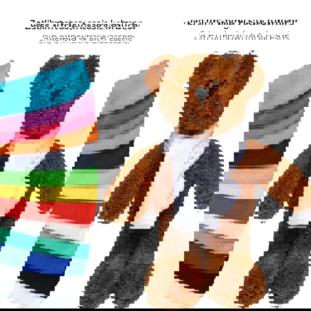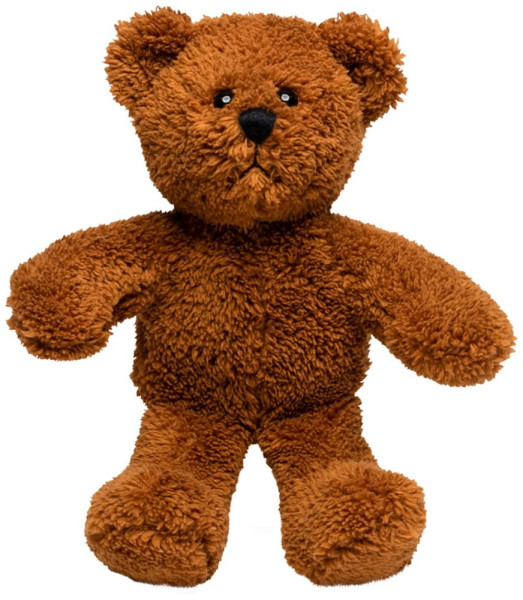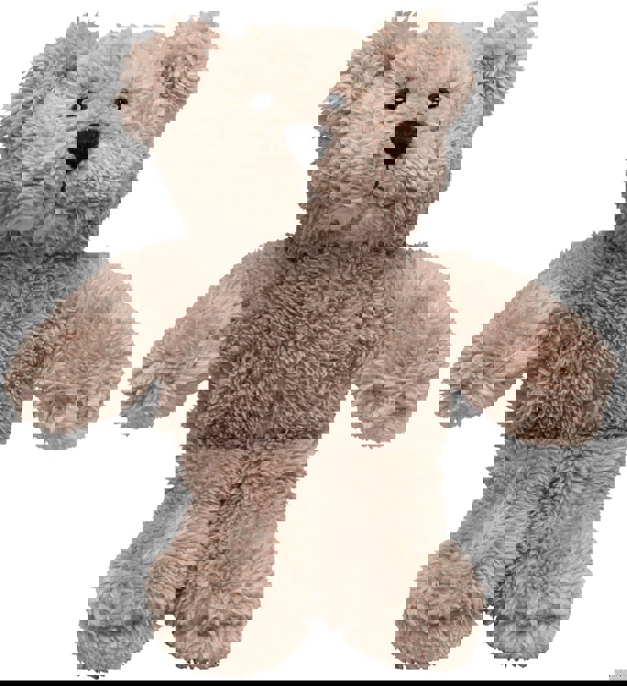Der Bär ist ein hübscher, kuscheliger Teddy. Er ist aus einer Art kuscheligem Plüsch gefertigt und auch seine Schnauze ist nicht aufgesetzt, sondern aus einem Teil mit dem ganzen Gesicht – dadurch hat er ein ganz markantes Gesicht mit Wiedererkennungswert und weil sowohl sein Popo als auch seine Füße beschwert sind, macht er sowohl ausgestreckt als auch sitzend eine super Figur. Dieser Softplüsch Bär ist nach OEKO-TEX® Standard 100 zertifiziert und bis 60°C waschbar.