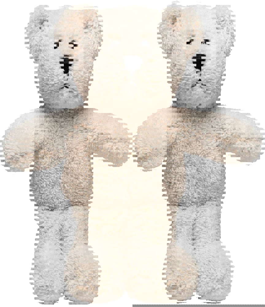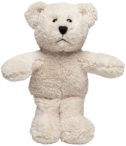 Der Bär ist ein hübscher, kuscheliger Teddy. Er ist aus einer Art kuscheligem Plüsch gefertigt und auch seine Schnauze ist nicht aufgesetzt, sondern aus einem Teil mit dem ganzen Gesicht – dadurch hat er ein ganz markantes Gesicht mit Wiedererkennungswert und weil sowohl sein Popo als auch seine Füße beschwert sind, macht er sowohl ausgestreckt als auch sitzend eine super Figur. Dieser Softplüsch Bär ist nach OEKO-TEX® Standard 100 zertifiziert und bis 60°C waschbar.
