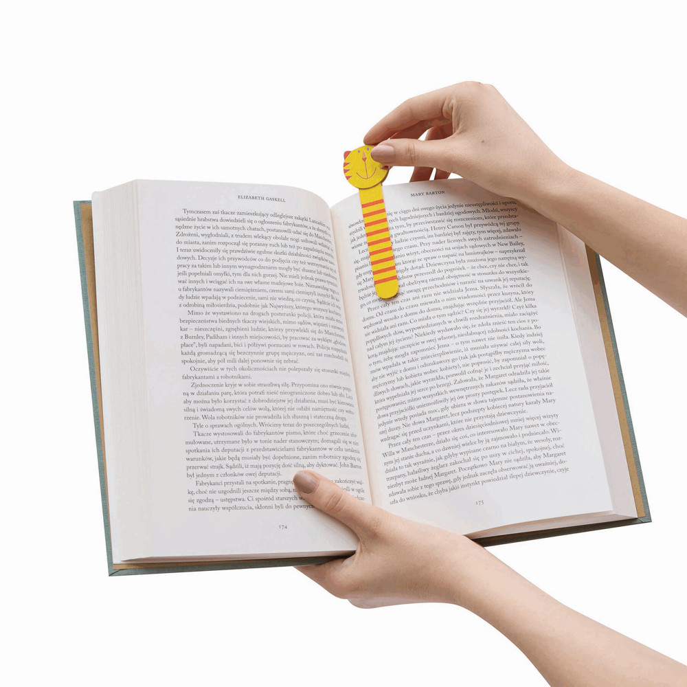 Holz-Lesezeichen FUNNY ANIMALS: mit lustigen Tierköpfen und Lineal auf der Rückseite der Buchclips, 4-fach sortiert