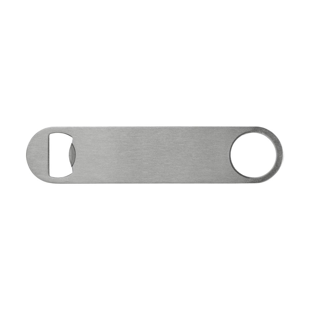 Einfach, aber wirkungsvoll. Flacher Flaschenöffner aus Edelstahl. Eignet sich aufgrund des Loches perfekt für kleine Spinner-Shows hinter der Bar. Außerdem gut an magnetischen Oberflächen zu befestigen.