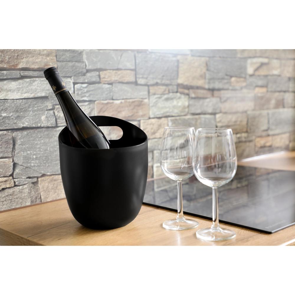 Edler Flaschenkühler aus stabilem Kunststoff mit praktischem Griffloch. Füllmenge: 2,5 Liter.