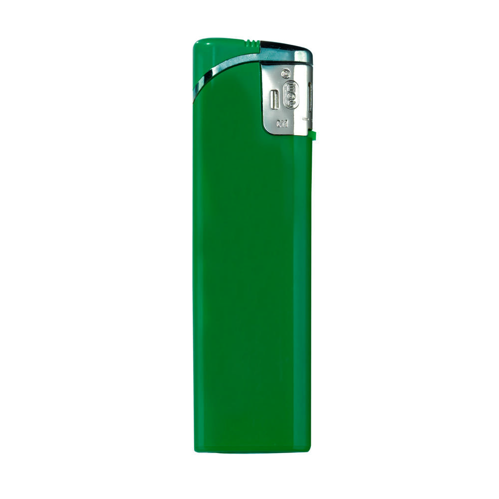 Flaches, elektronisches und nachfüllbares Feuerzeug in Hardcolour Farben mit silberner Kappe und Kindersicherung.