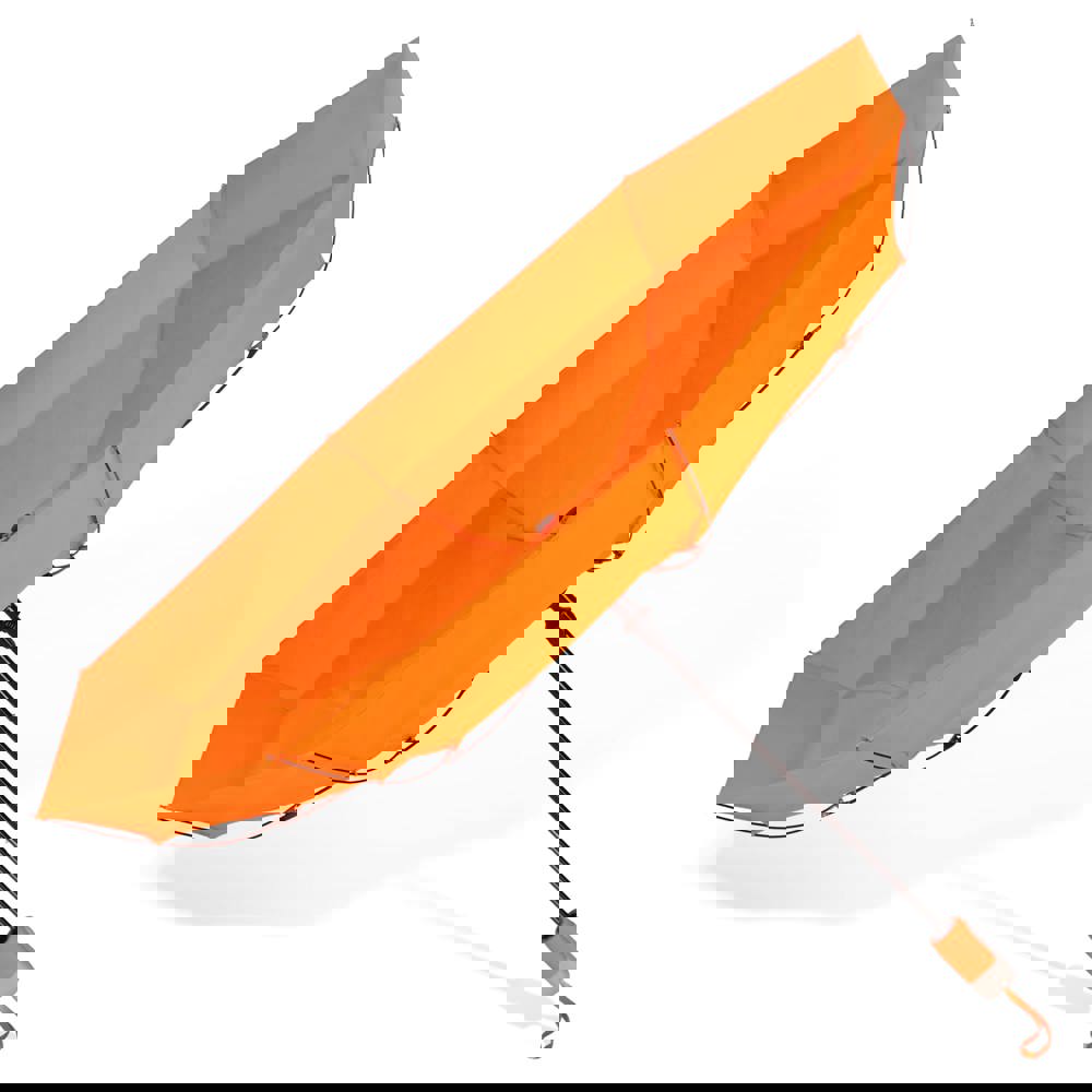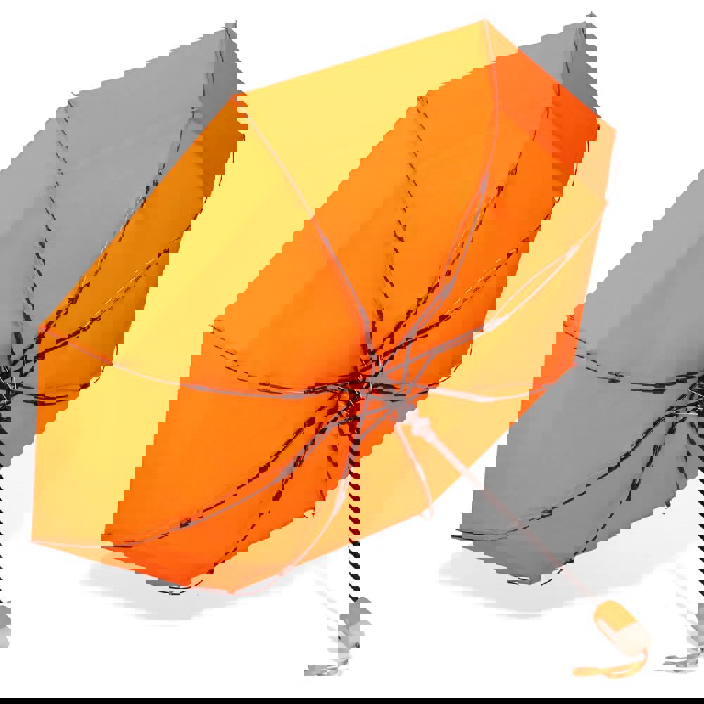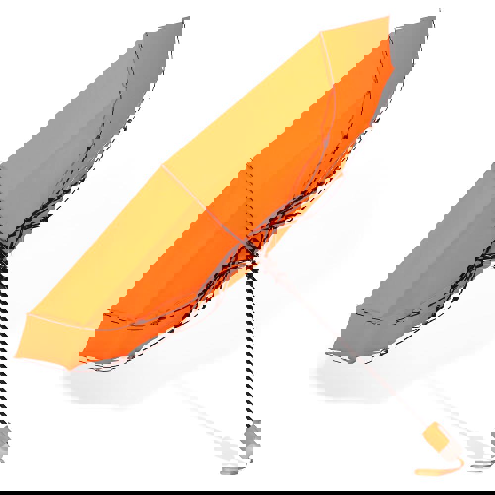 Schöner faltbarer Regenschirm mit Hülle und ergonomischem Designgriff. Die Verstrebungen des Gestells sind aus Fiberglas für zusätzliche Haltbarkeit. Das schwarze Gestell bildet einen schönen Kontrast zum bunten Schirmdach aus Pongee-Polyester.