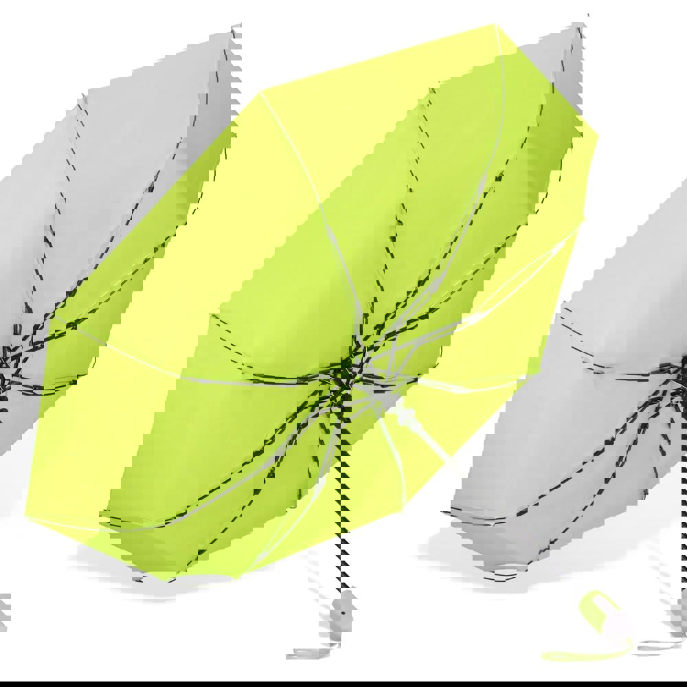 Schöner faltbarer Regenschirm mit Hülle und ergonomischem Designgriff. Die Verstrebungen des Gestells sind aus Fiberglas für zusätzliche Haltbarkeit. Das schwarze Gestell bildet einen schönen Kontrast zum bunten Schirmdach aus Pongee-Polyester.