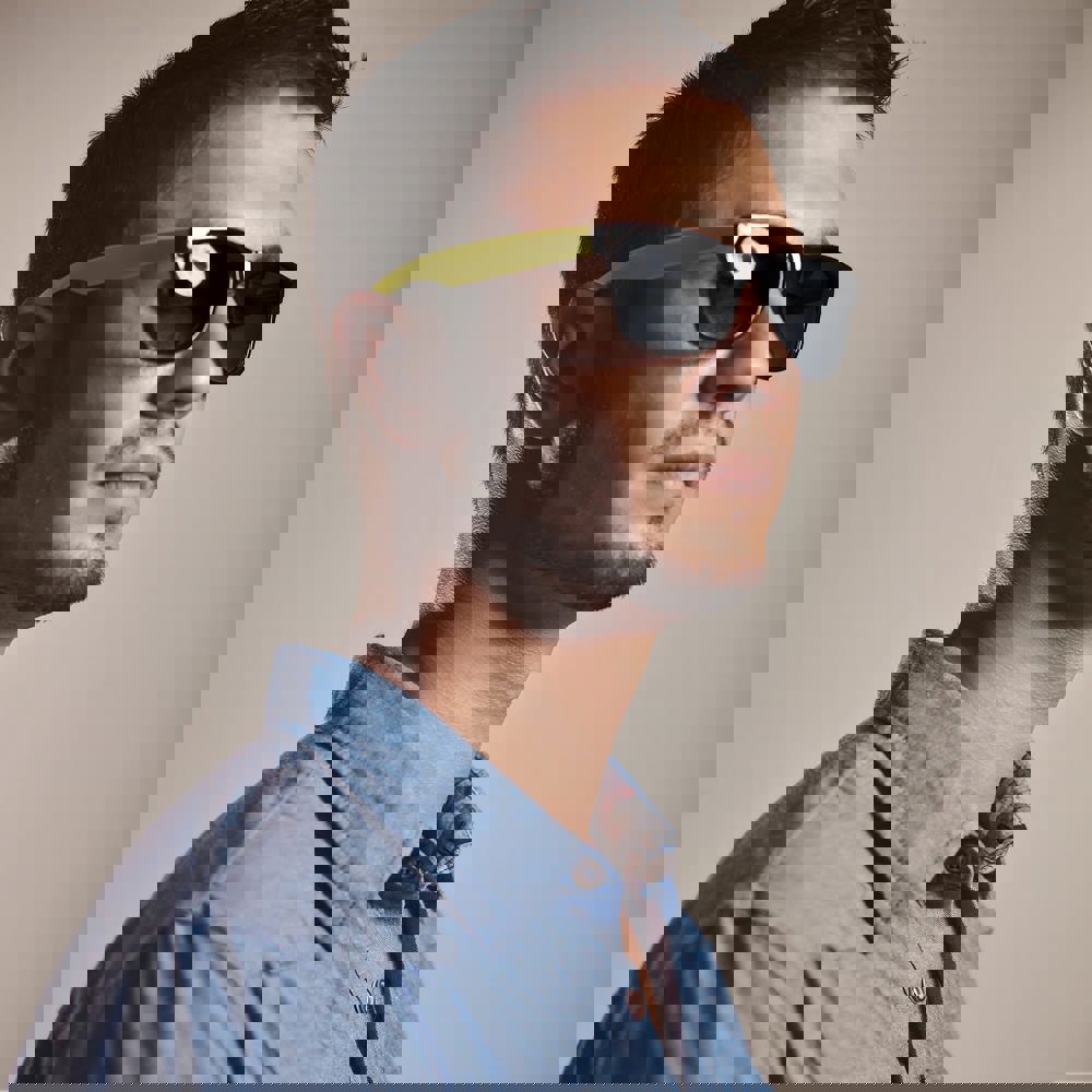 Moderne Sonnenbrille mit farbigen Bügeln und einem UV400-Filter.... mehr