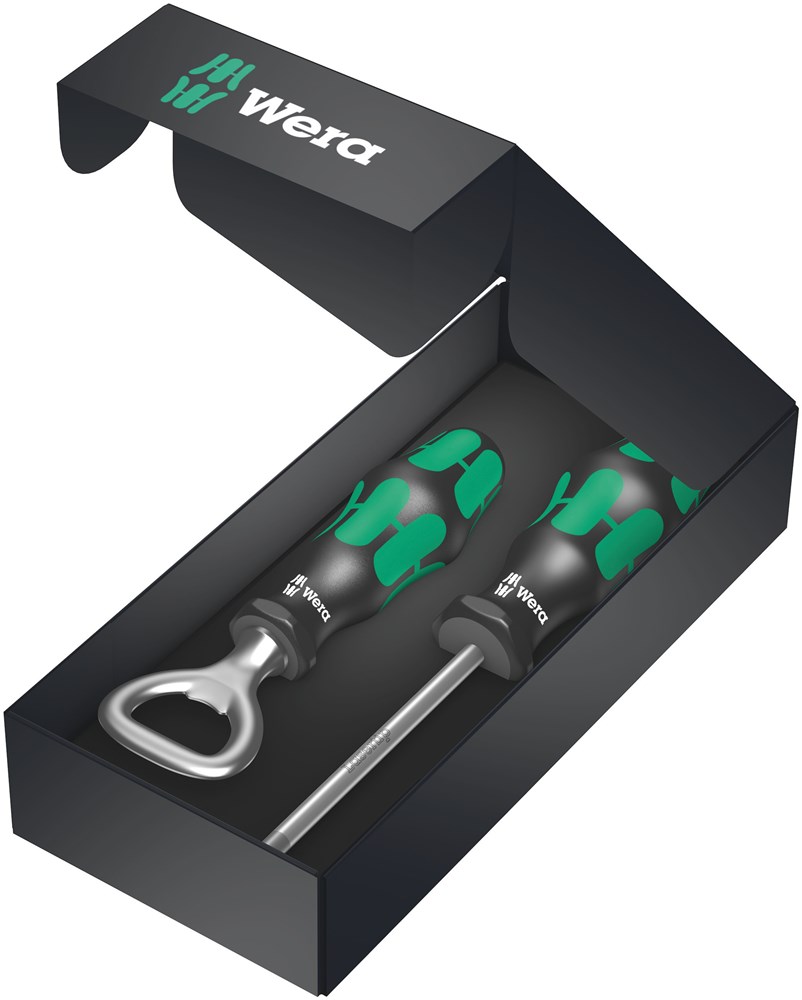 Schraubendreher für Kreuzschlitzschreiben Pozidriv. Harte Griffzonen für hohe Arbeitsgeschwindigkeit, weiche Griffzonen für hohe Drehmomentübertragung. Mit Werkzeugfinder Take it Easy: Farbkennzeichnug nach Profilen und Größenstempelung. Lasertip Spitze für mehr Halt im Schraubenkopf. Mit Flaschenöffner
