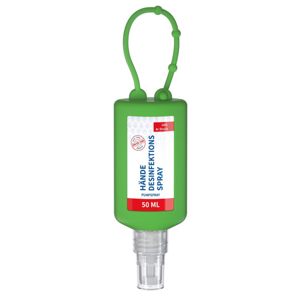 Hände-Desinfektionsspray (DIN EN 1500), 50 ml Bumper grün, Body Label (R-PET)