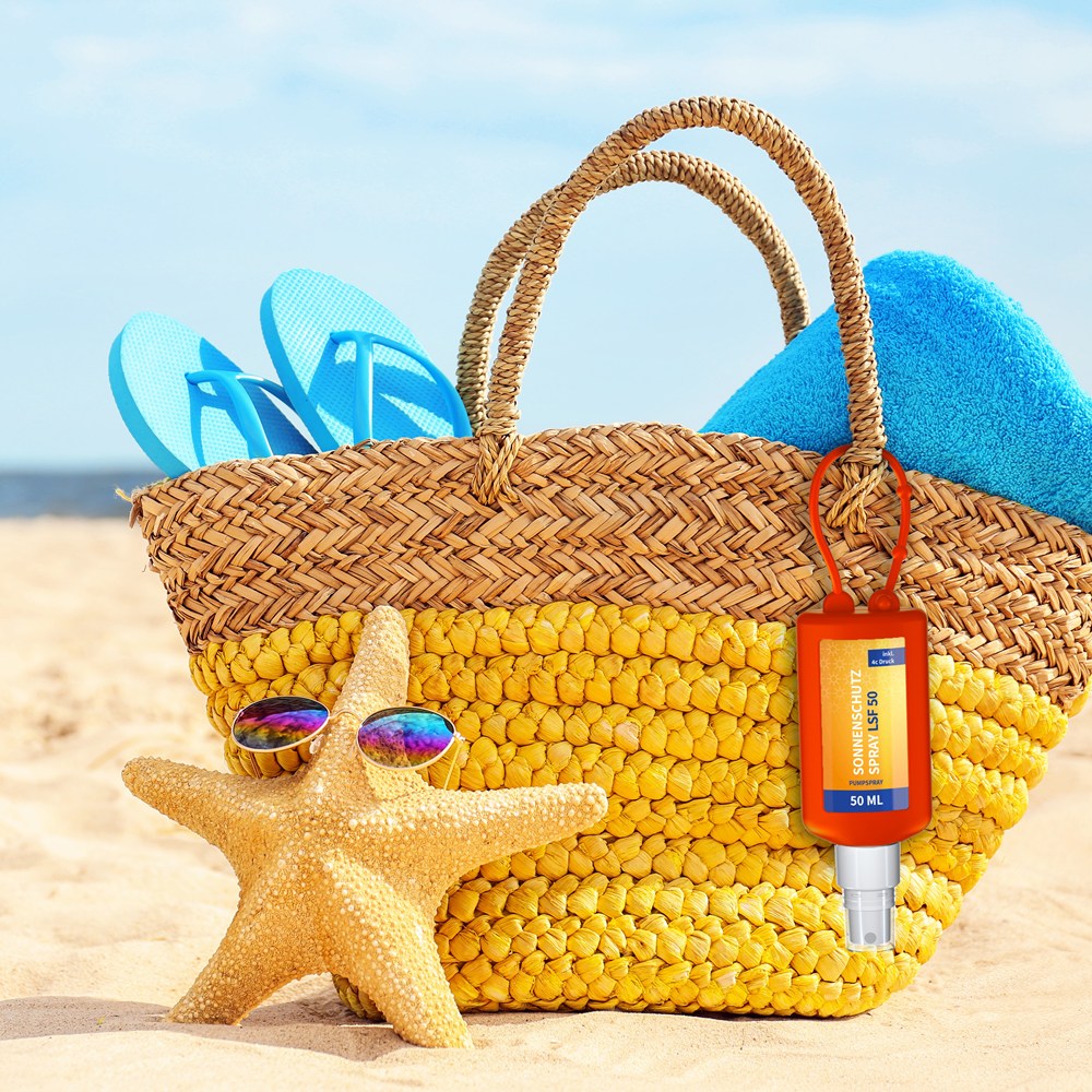 Das Spray mit Silikonhülle ist nicht nur optisch ein echter Hingucker! Raffiniert mit Schlaufe zum Anhängen an de Strandtasche, den Wander-Rucksack, den Ski-Anorak oder an den Kinderwagen.